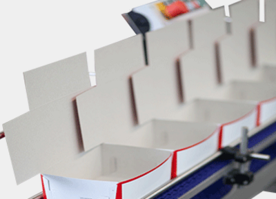 Die Vereinzelung oder Zusammenführung von Waren unterschiedlicher Größe, und Qualität realisieren wir über programmgesteuerte Lösungen, in der diese schonend und geräuscharm gelenkt werden.